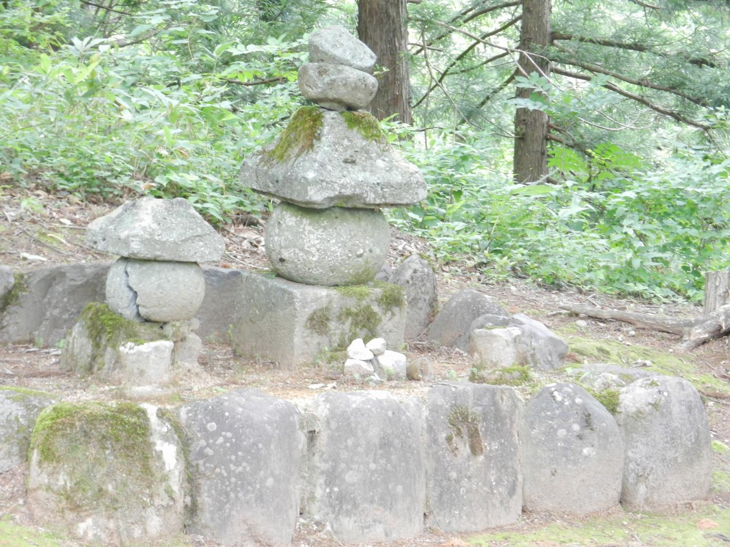 また、小型の五輪塔の水輪には大日如来(だいにちにょらい)の種子が彫られており、製作年代は室町中期と思われる。