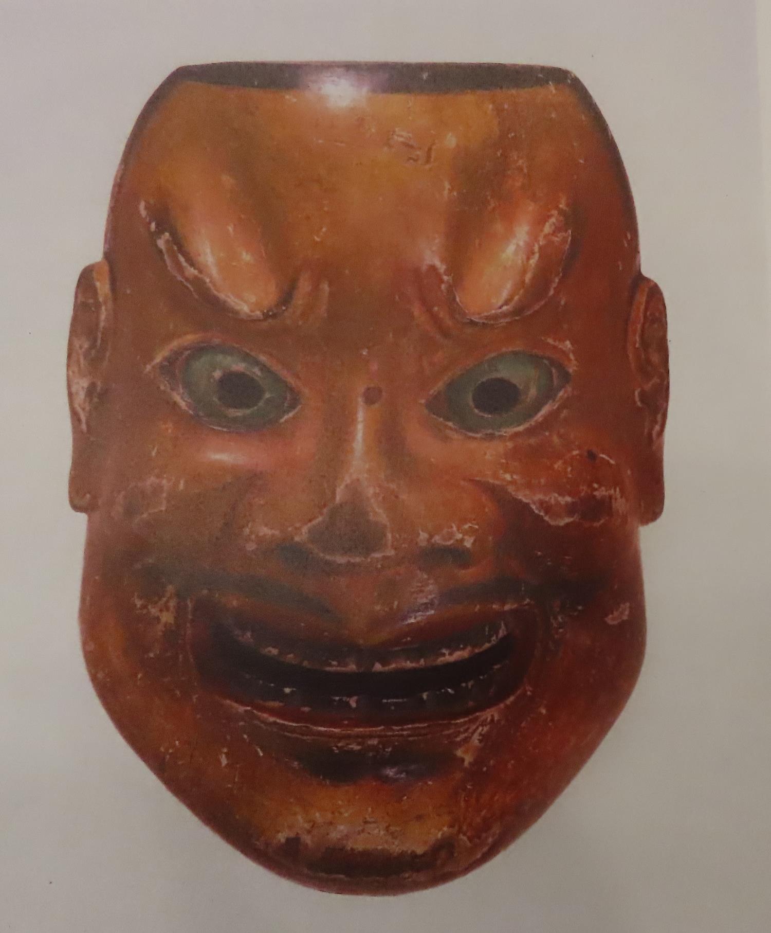 大正7年まで続いた稲荷の神事能では「田村」に用いたと伝えられている。全体の四角い表現は他の天神面に類を見ない古風さを持っている。耳穴は相当使い込まれた跡が残る。良材の檜で作られていて軽い。向かって右側、頭部から目穴を通り口端を通り顎にかけて真二つに割れて継いでいる。額部で蝶形くさびが埋木されている。その修理は完全で面表の胡粉彩色の手当ても至極上等である。顎部の相当大きな剥落も同時に修理彩色されたものと思われる。顔面のところどころにさしてある朱は黄口の朱を使用し、口唇(こうしん)には赤口の朱を使用している。面の縁まで胡粉彩色を施す。毛描きも繊細で、彫り、彩色ともに優れている。眼には本来金銅板が入っていたのであろうが、現在は和紙に緑色の顔料を塗り貼ってある。