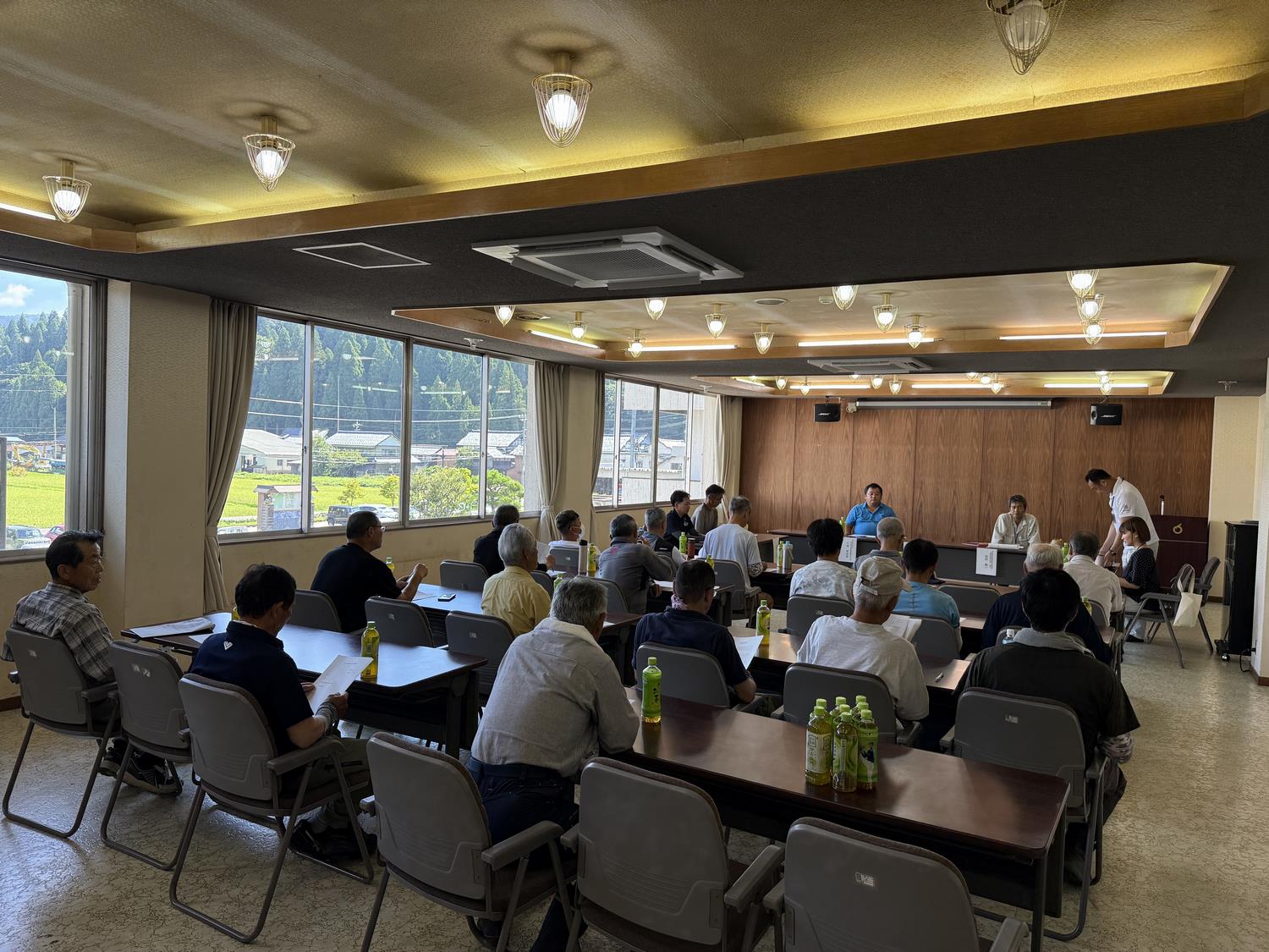 2日間で、28経営体(32名)の農業者が参加し、福井県丹南農林総合事務所の普及指導員池上主任より、7年産の生育状況についての報告と今後の穂肥の施用(時期・量)や水管理、刈取時期について重点的な取組方針に基づいて指導を受けました。